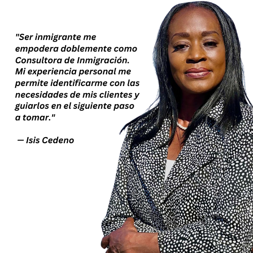 Isis Cedeno es la fundadora de Consultores de Inmigracion LLC y desde más de veinte años, tanto ella como su equipo, han servido a nacionales y a la comunidad inmigrante en todas sus necesidades incluyendo la parte migratoria.